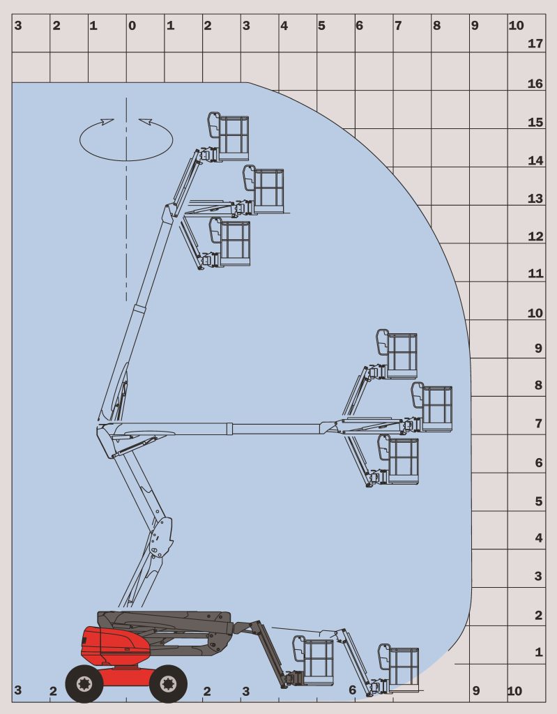 Avec une hauteur de travail de 16 mètres, elle permet un accès rapide et précis aux zones en hauteur, même dans les espaces complexes ou restreints. Sa conception articulée offre une grande flexibilité de mouvement, idéale pour contourner les obstacles sans compromettre la stabilité.