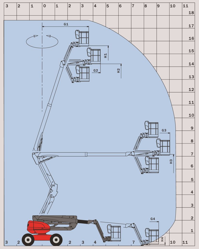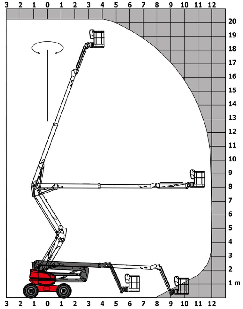 Avec une hauteur de travail pouvant atteindre 18 mètres, elle est idéale pour les opérations d’entretien, d’installation ou d’intervention en extérieur. Son système articulé permet d’accéder avec précision à des zones difficiles d’accès, même en environnement contraint.