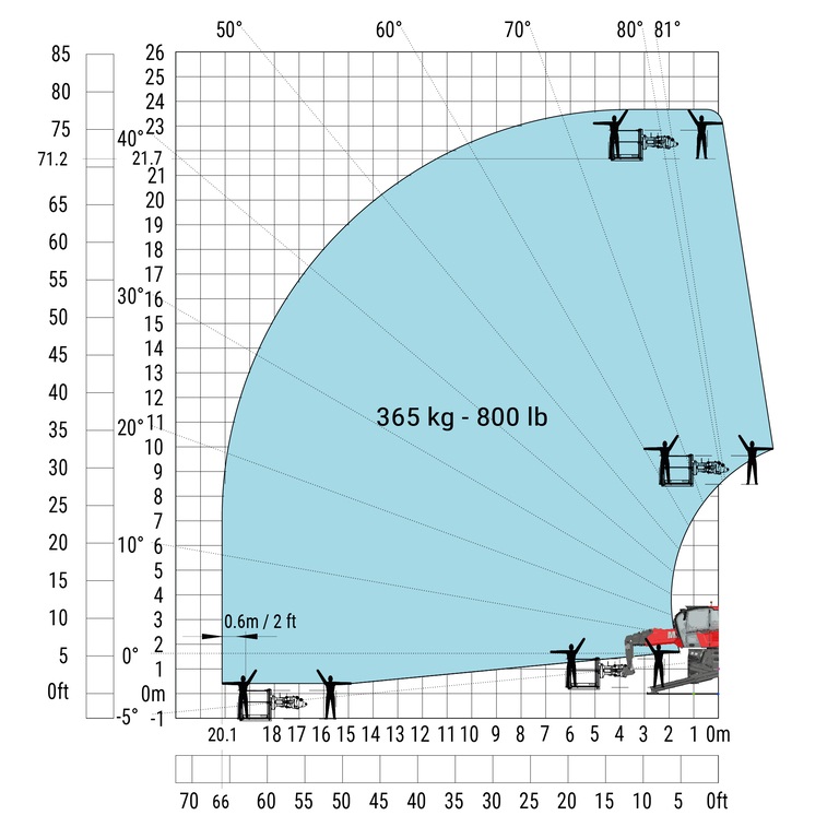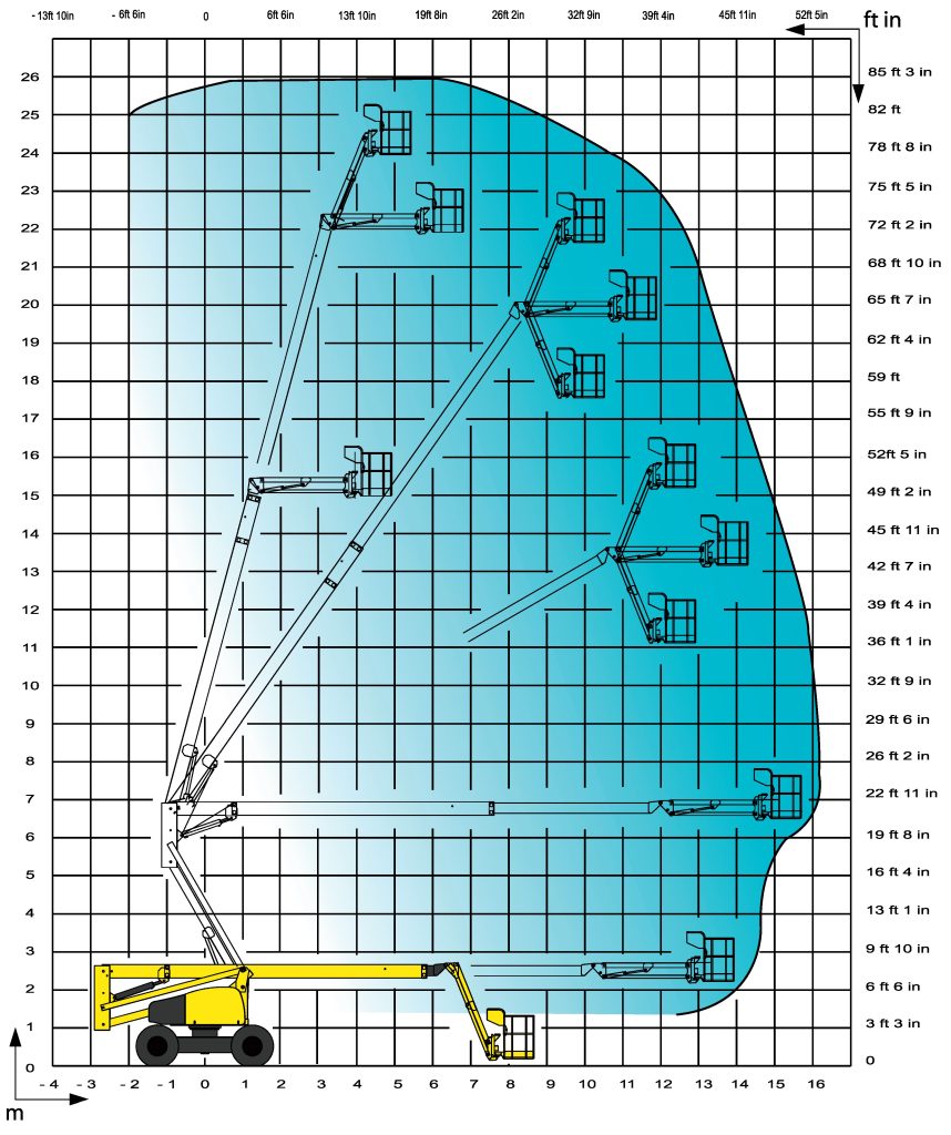 La capacité de charge maximale de nos nacelles 26 m est de 230 kg, soit deux personnes ainsi que leur équipement de travail. Elles sont compactes et donc idéales pour intervenir dans des endroits exigus en extérieur comme en intérieur. Pour l’utilisation en extérieur, ces nacelles résistent à des vitesses de vent pouvant atteindre 45 km/h. La tourelle s’oriente sur 360° en continu.