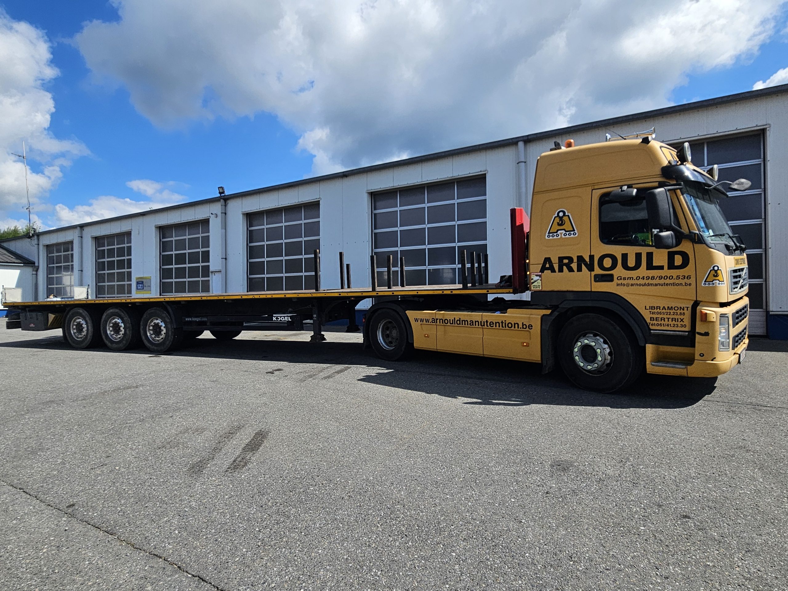 Nous disposons de semi-remorques plateau à 3 essieux, idéales pour le transport de charges volumineuses, longues ou encombrantes.