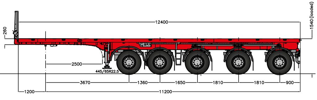 Nos semi-remorques plateau à 5 essieux représentent le haut de gamme en matière de capacité de charge et de stabilité pour le transport routier.