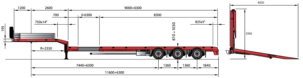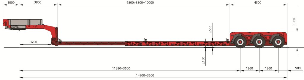 Notre semi-remorque extra-basse 3 essieux, associée à un dolly avant 1 essieu, est spécialement conçue pour le transport de charges très lourdes ou exceptionnellement hautes, tout en garantissant une hauteur de chargement minimale.